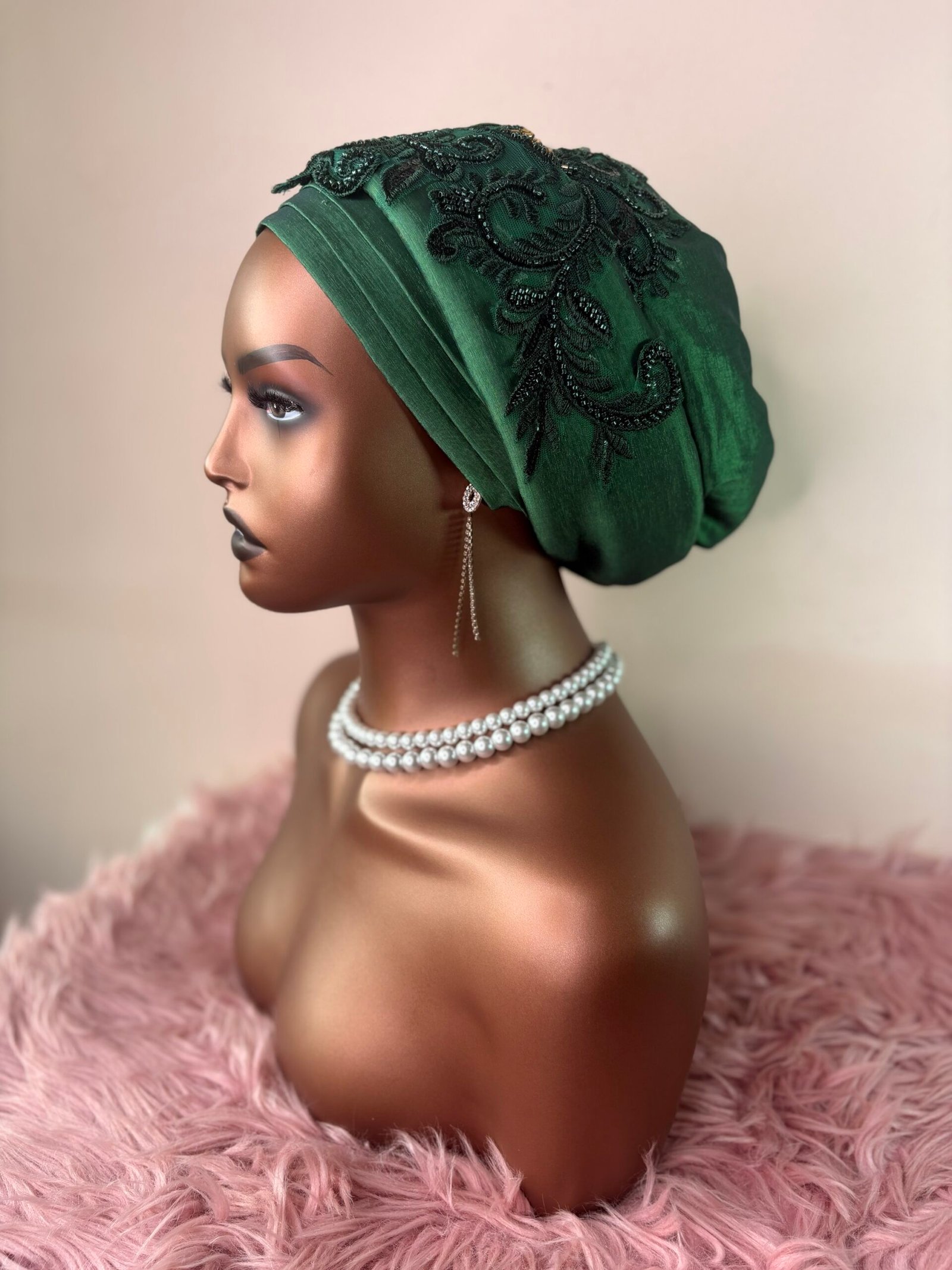 Un magnifique bonnet de couleur vert émeraude